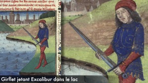 Bon, on peut revenir à la première éventuellement. Bon, alors quel rapport entre la quête du Graal et la geste du roi Arthur et des chevaliers de la table ronde ? Bien sûr, la littérature arthurienne constituant ce qu'on nomme la matière de Bretagne.